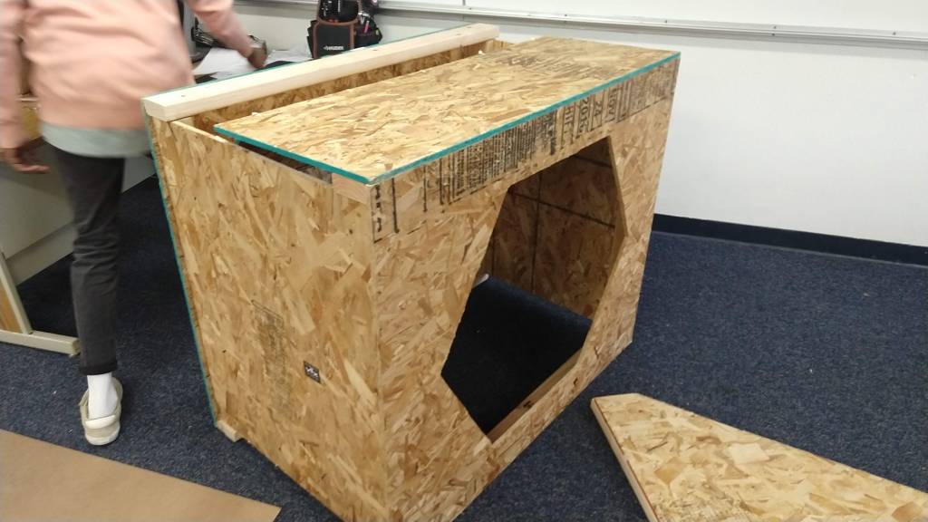 Build continued to construct the field pieces and are remarkably close to being finished. Today the shield generator piece was completed with the exception of six small pieces. Other than those six pieces and the curved slots on the human player station, all the field elements are complete. Although a little behind schedule, the build team was still able to complete the pieces relatively quickly so that we have a full field ready.