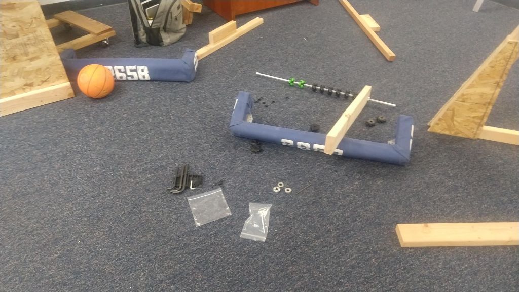 Build-wise we were able to complete the other tube side beam and start drilling and tapping holes for the angled plates that hold the tubes on the tube. We were also able to start assembling a prototype to test ball jamming in the intake. Both the drilling/tapping and the intake prototype should be finished tomorrow.