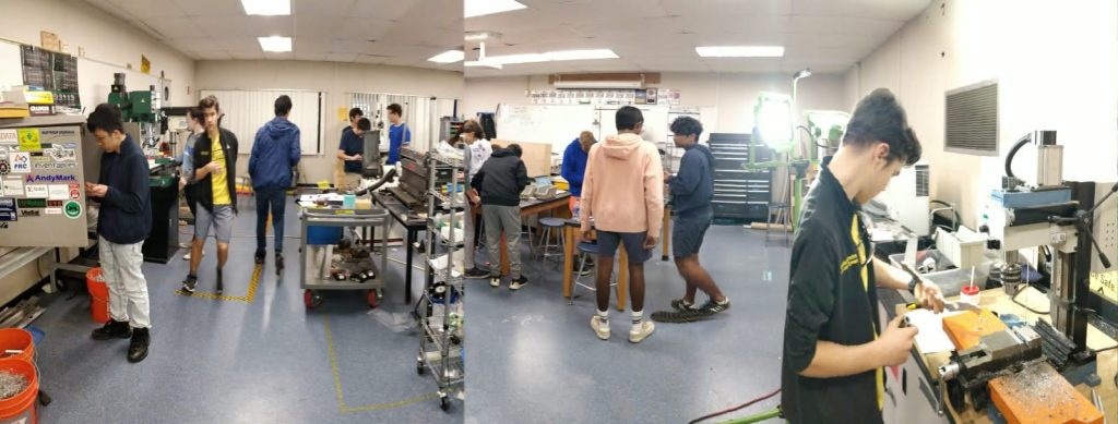 Electrical was also working today and had significant progress with the board. It seems to be almost complete with only a couple tweaks needed to make it fit inside the robot. Everything is a tight fit this year within the robot because of the tube taking up so much space. When wiring, electrical will also have to make sure that all the connections are solid so that we don’t have the same problems as last year. Then we had consistent issues with wires disconnecting during matches that persisted throughout the season. This was mostly a product of the Neo motors’ many wires, but also of some bad crimps we had. Things should be much improved this year though as we use Anderson connectors and zip ties along with them. We will also be tightly securing out encoder wires which were a big problem last year because of the fragile extension connectors.